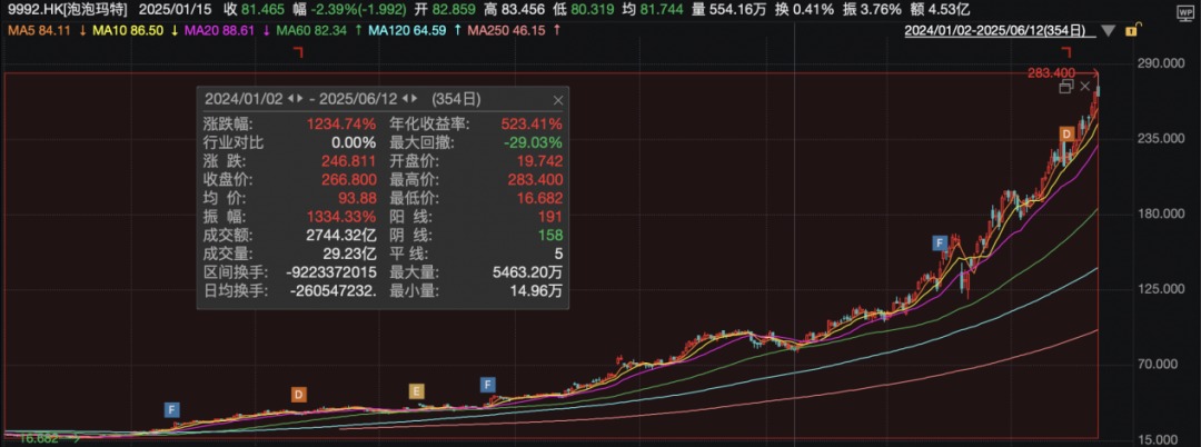 2024年初至今,泡泡玛特的股价涨幅达1235%。