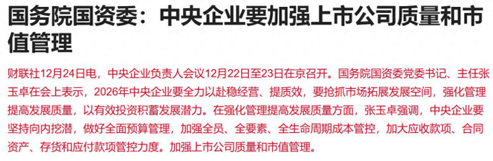 国资委,亲自下场提及,要加强上市公司质量和市值管理。